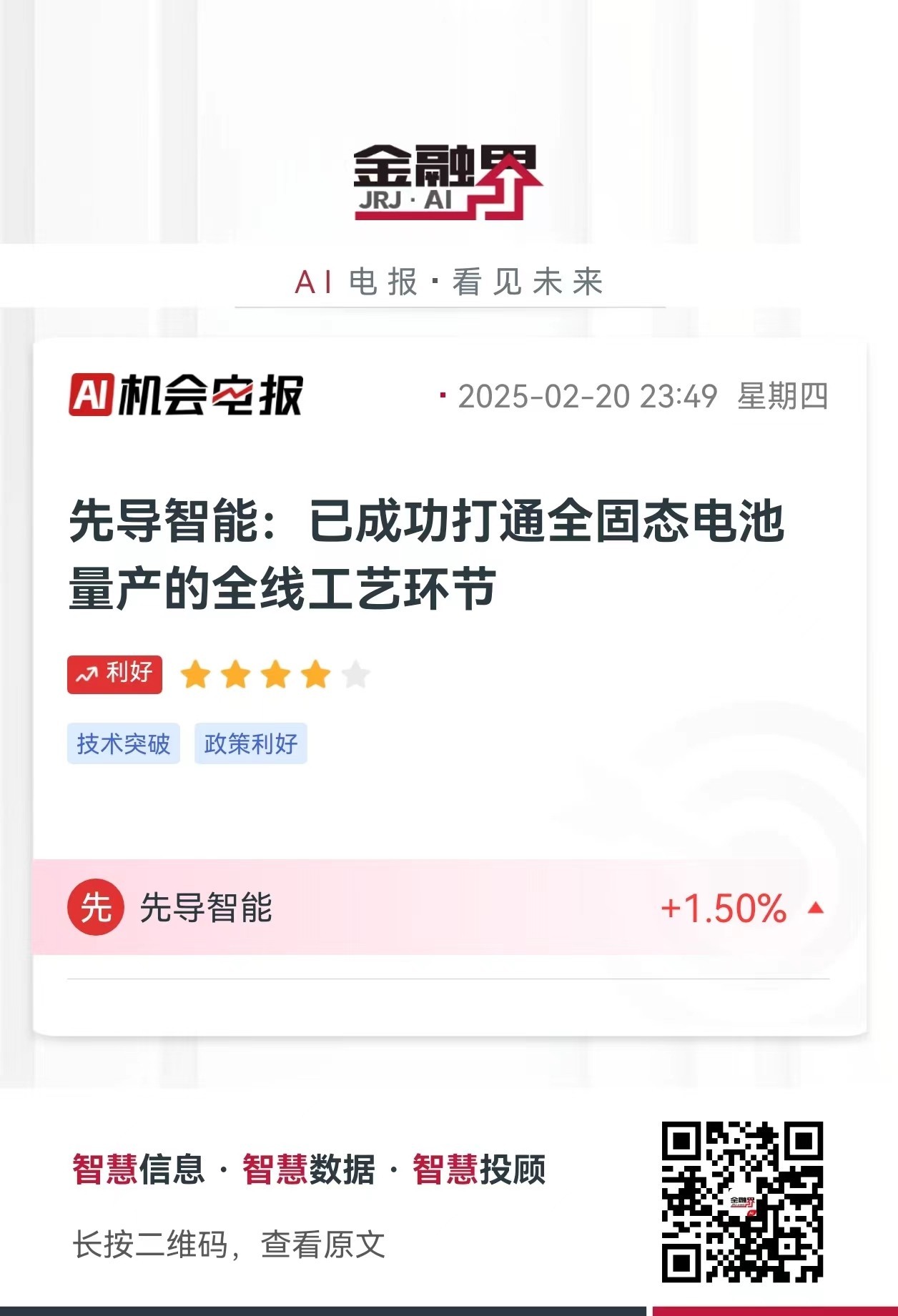 金融界App机会电报:先导智能2月20日在互动平台表示,在固态电池领域,公司是拥有完全自主知识产权的全固态电池整线解决方案服务商,已成功打通全固态电池量产的全线工艺环节,实现了从整线解决方案到各工段的关键设备覆盖。2020年起已与多家行业领军企业达成设备合作,并已经向欧、美、日、韩等国家和地区及国内的头部电池客户、知名车企和新兴电池客户交付了各工段的固态电池生产设备,相关产品得到客户的高度认可,并陆续获得重复订单。